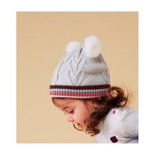 Gorro gris doble pompon para niña BOBOLI