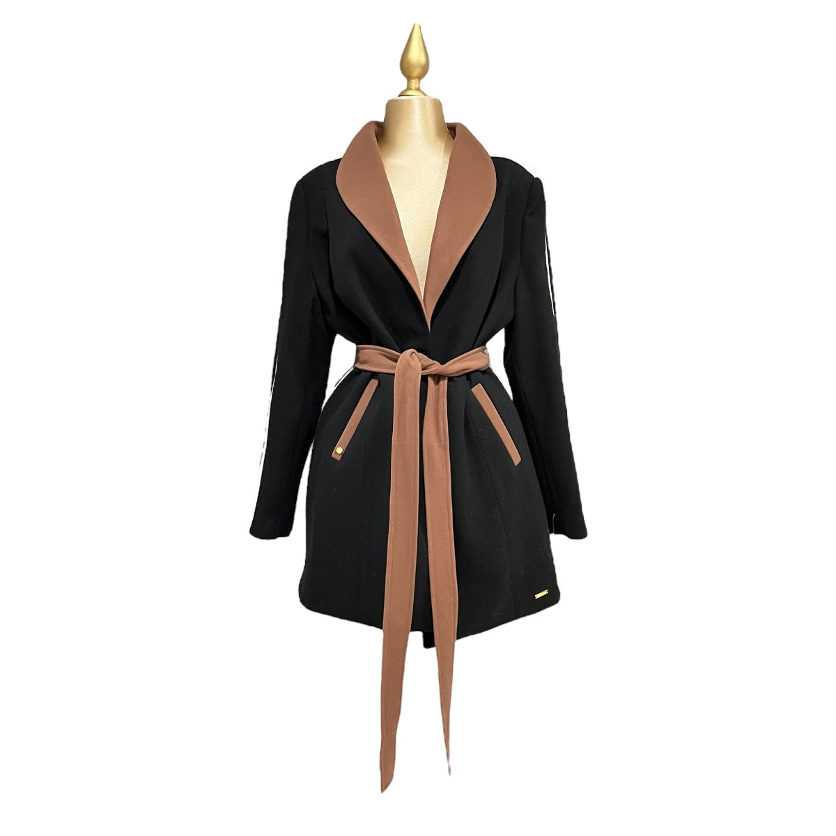 Abrigo Negro/Tabaco/Hueso Con Cinturón Para Dama MUSSI