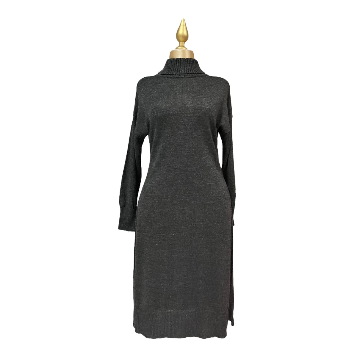 Vestido Cuello De Tortuga Color Gris Oscuro Para Dama Om