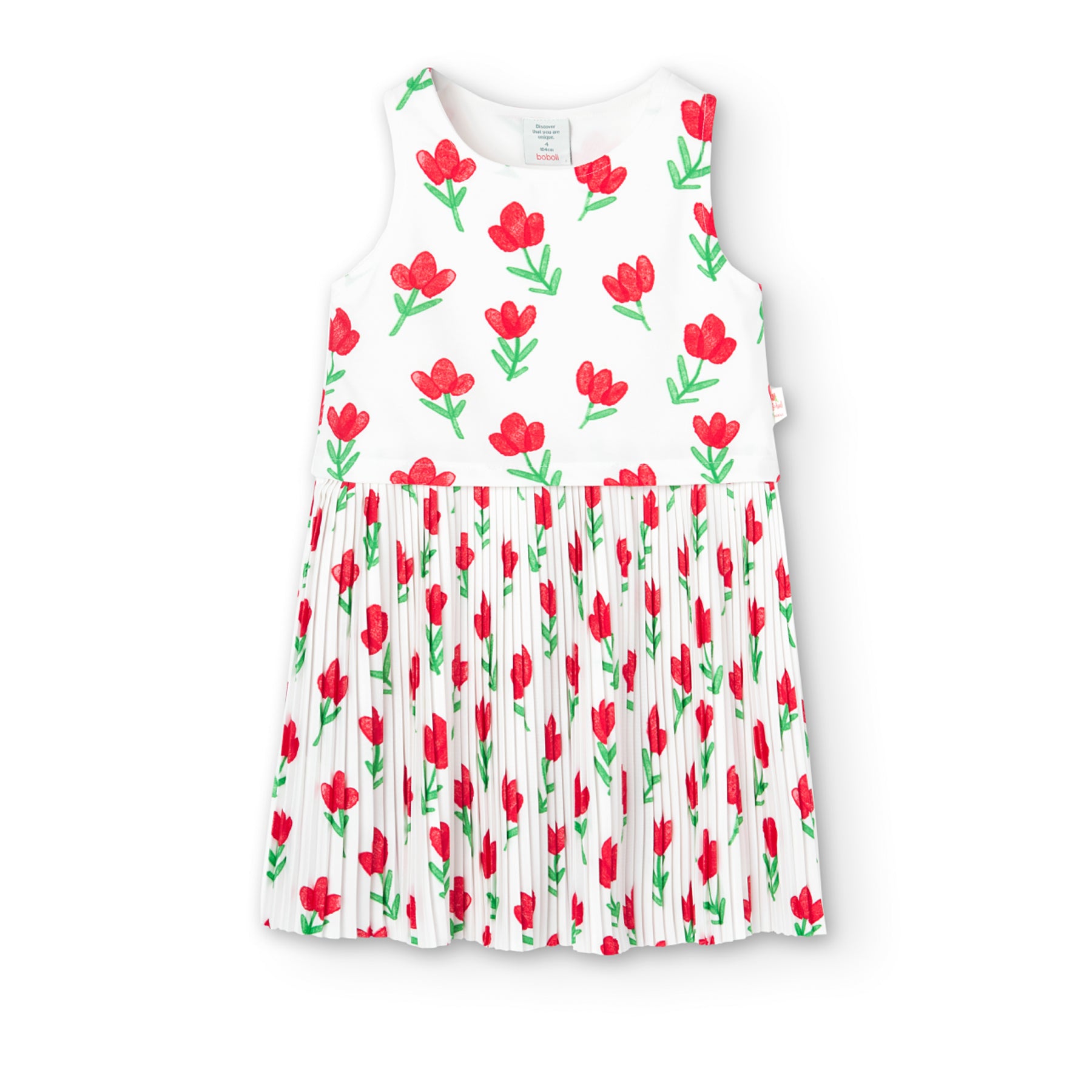 Vestido De Punto Plisado Estampado Flores Para Niña BOBOLI